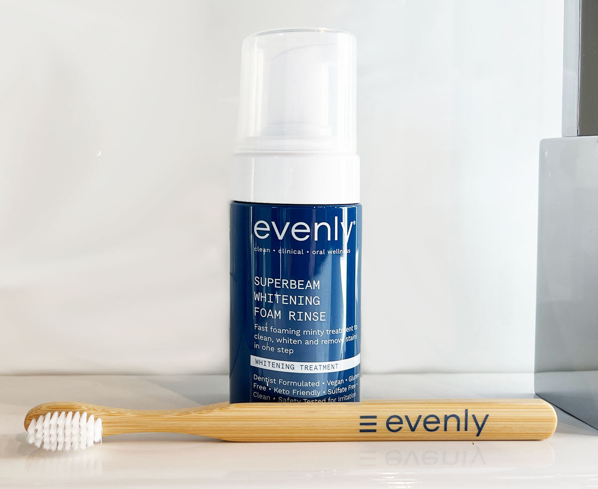 Fast foaming minty treatment to clean, whiten and remove stains in one step. Whiten teeth with hydrogen peroxide, clean and exfoliate with papaya and pineapple enzymes. Hydrogen peroxide is also a great way to clean your Evenly aligners, retainers or night guard.